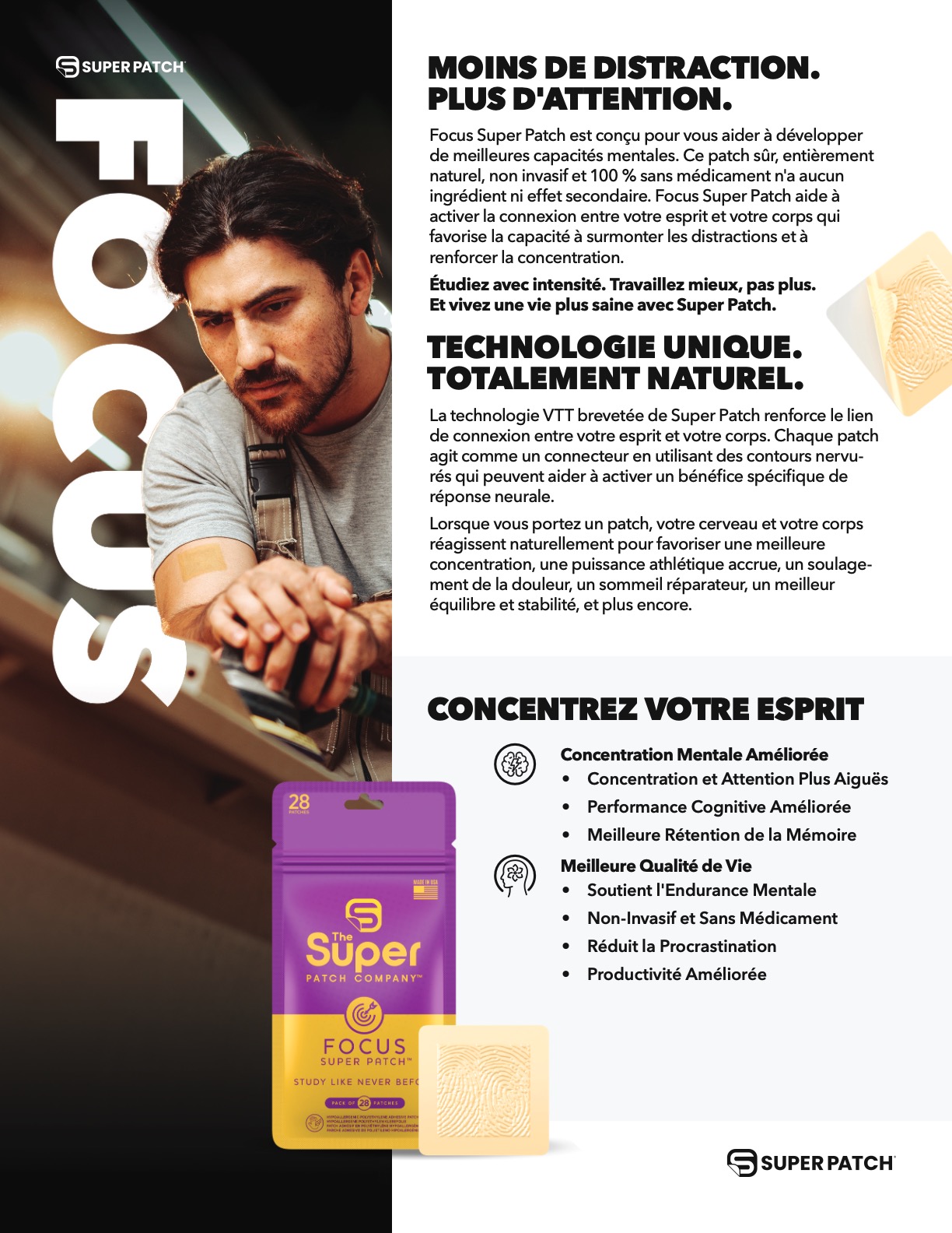 Concentrez-vous, restez concentré sur votre tâche et réfléchissez clairement grâce à la technologie sans médicament de Super Patch.