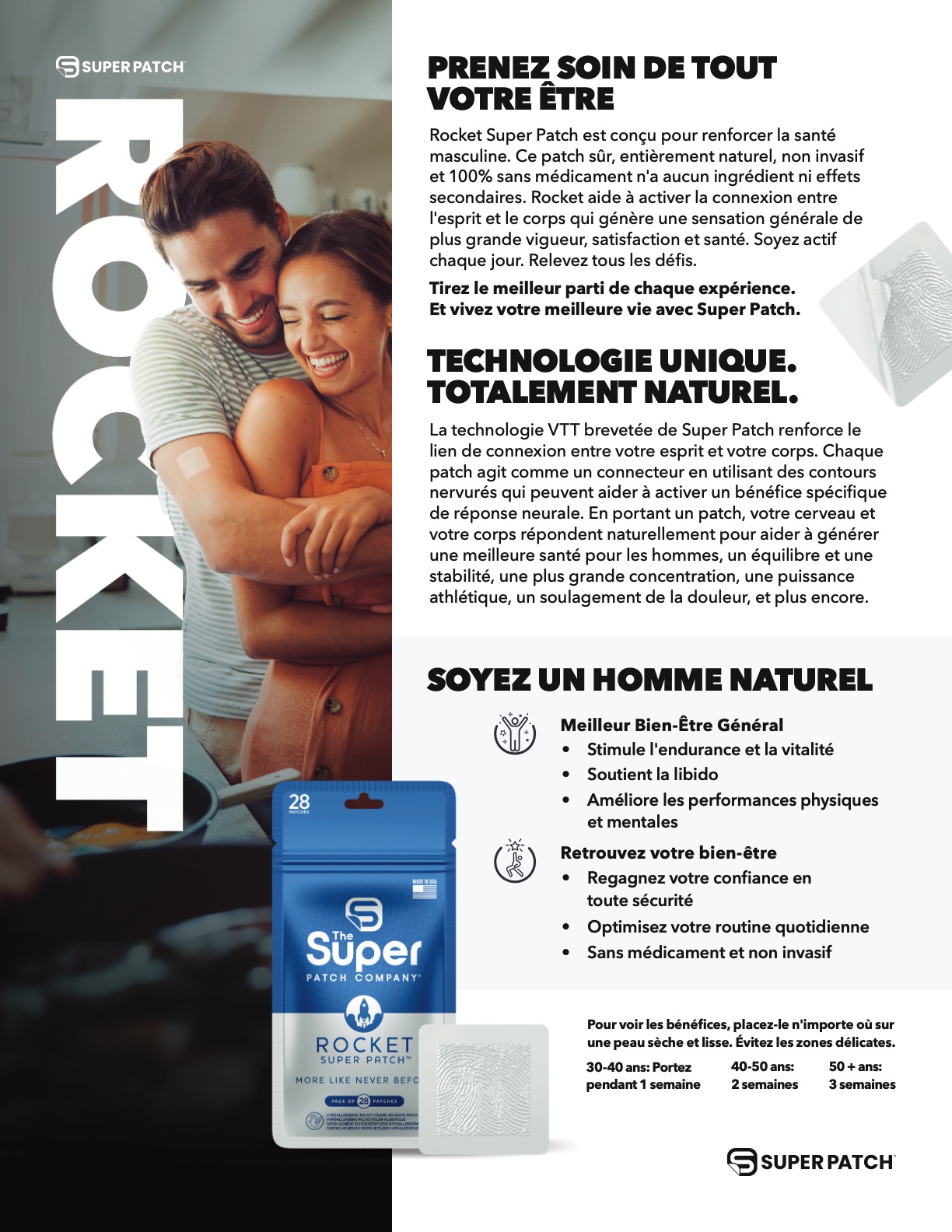 Rocket Patch est une solution sans médicament et non invasive qui utilise des principes avances pour stimuler naturellement les capacités érectiles.